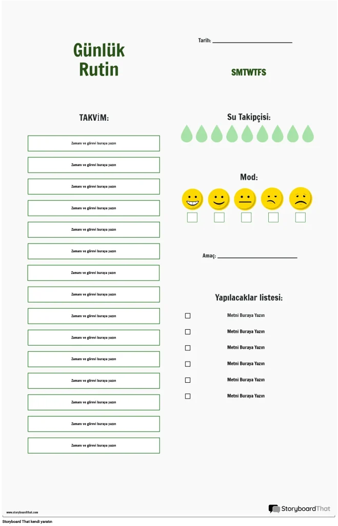 Günlük Sağlık Rutini Kısa ve tutarlı adımlardan oluşan esnek bir sabah/yapılacaklar dizisi; hidrasyon ve zihinsel hazırlık içerir. Sabah 1 bardak su; limonlu su; 5 dakika meditasyon; günün ilk işlerini yazma